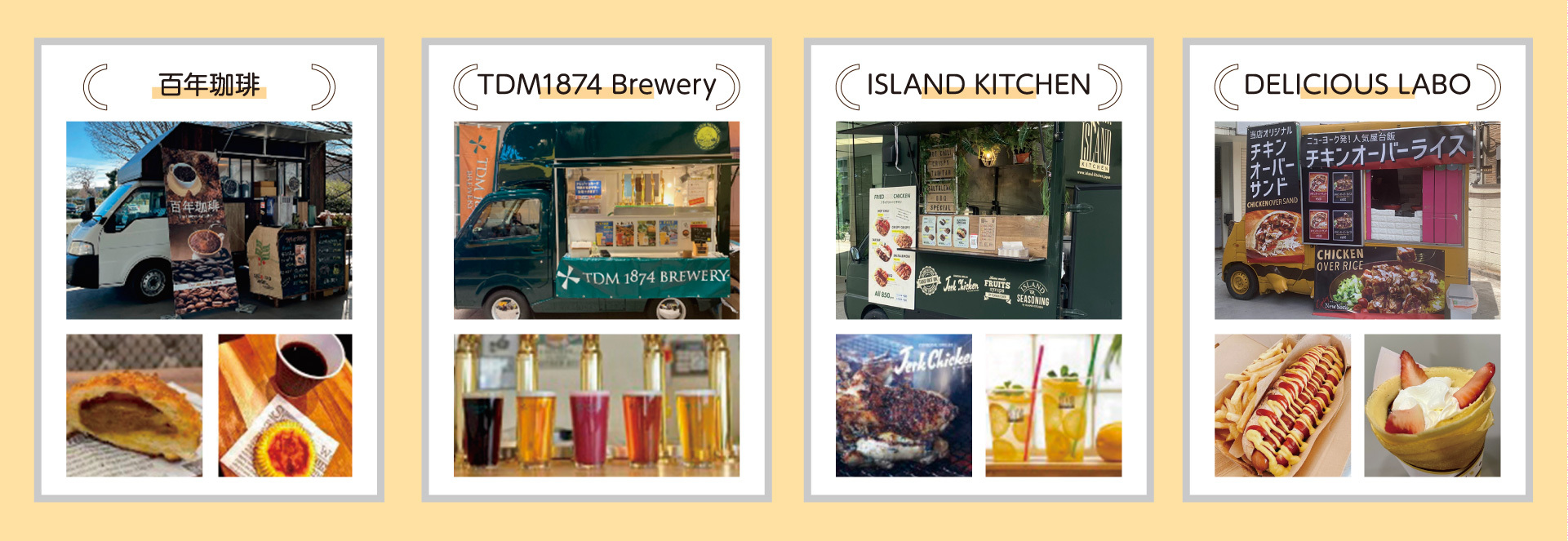 飲食ブースではコーヒーやクラフトビール、手軽に食べられるジャークチキンやホットドッグなどご用意します。芝生エリアで、ご家族・ご友人とゆっくりお過ごしください。